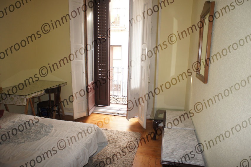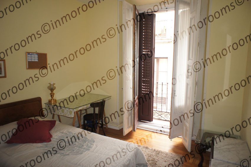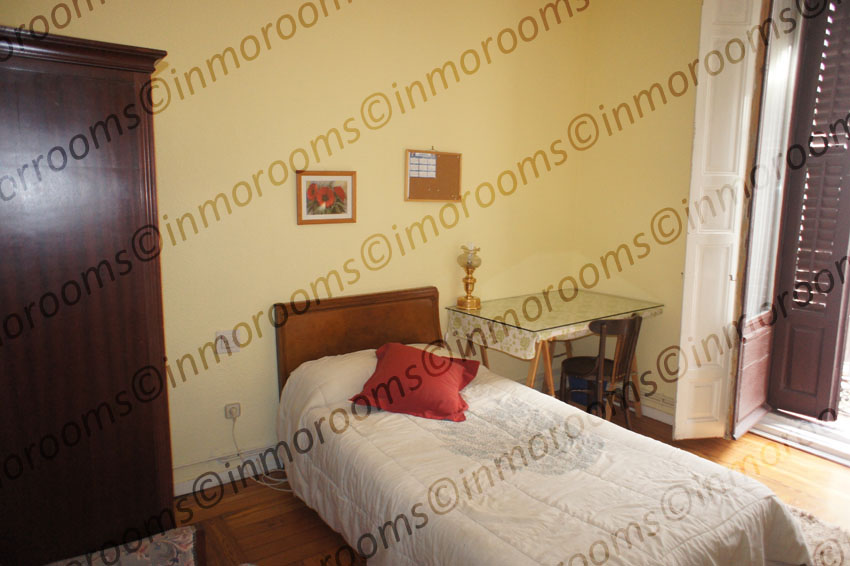 Amplia habitación , exterior con balcón a la calle Luna. Suelos de tarima.Totalmente amueblada: cama sencilla, mesa, escritorio, silla, mesilla, y armario.
